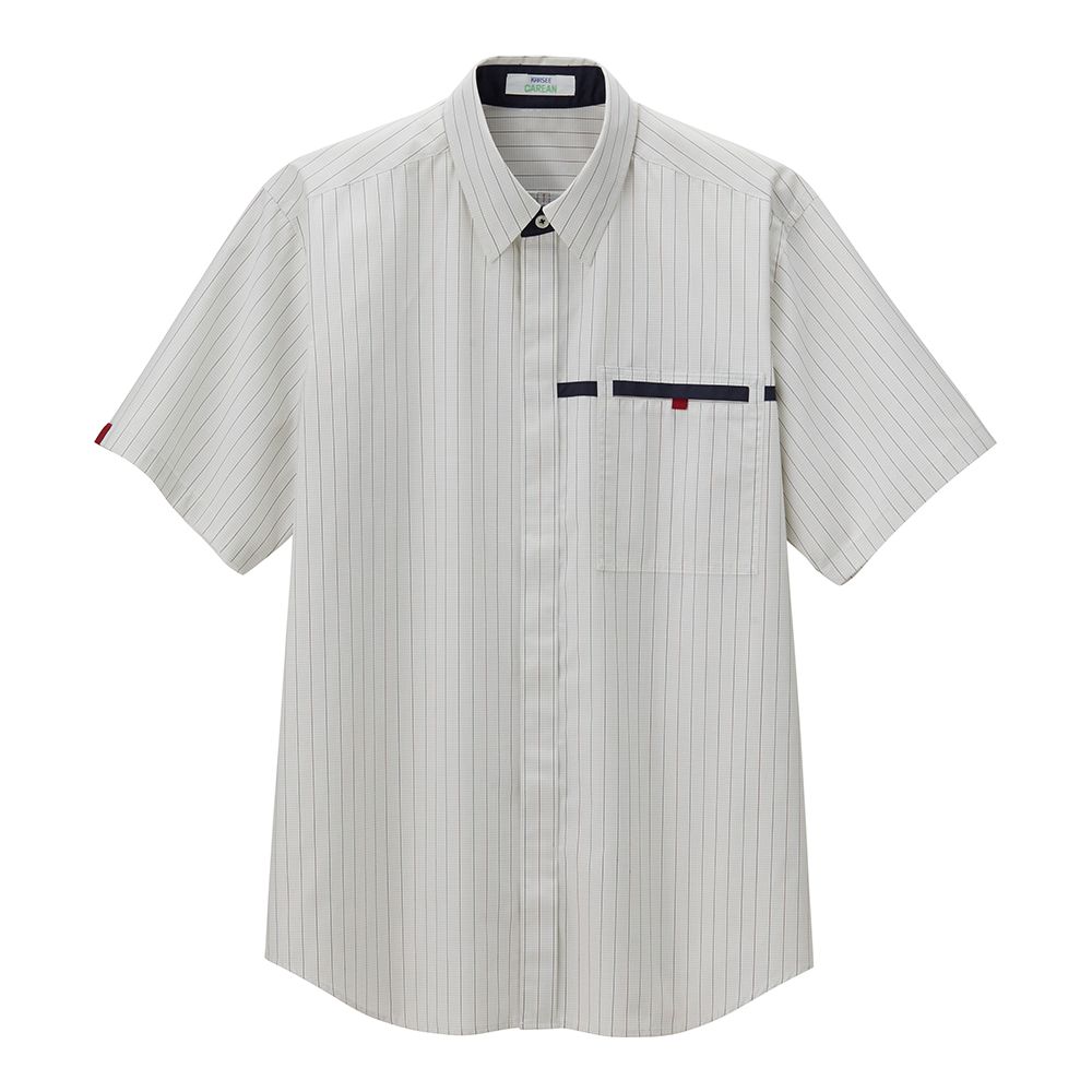 【CAREAN/キャリーン-CSY-012-2】男女兼用半袖シャツ(ネイビー)【ストライプチェック】