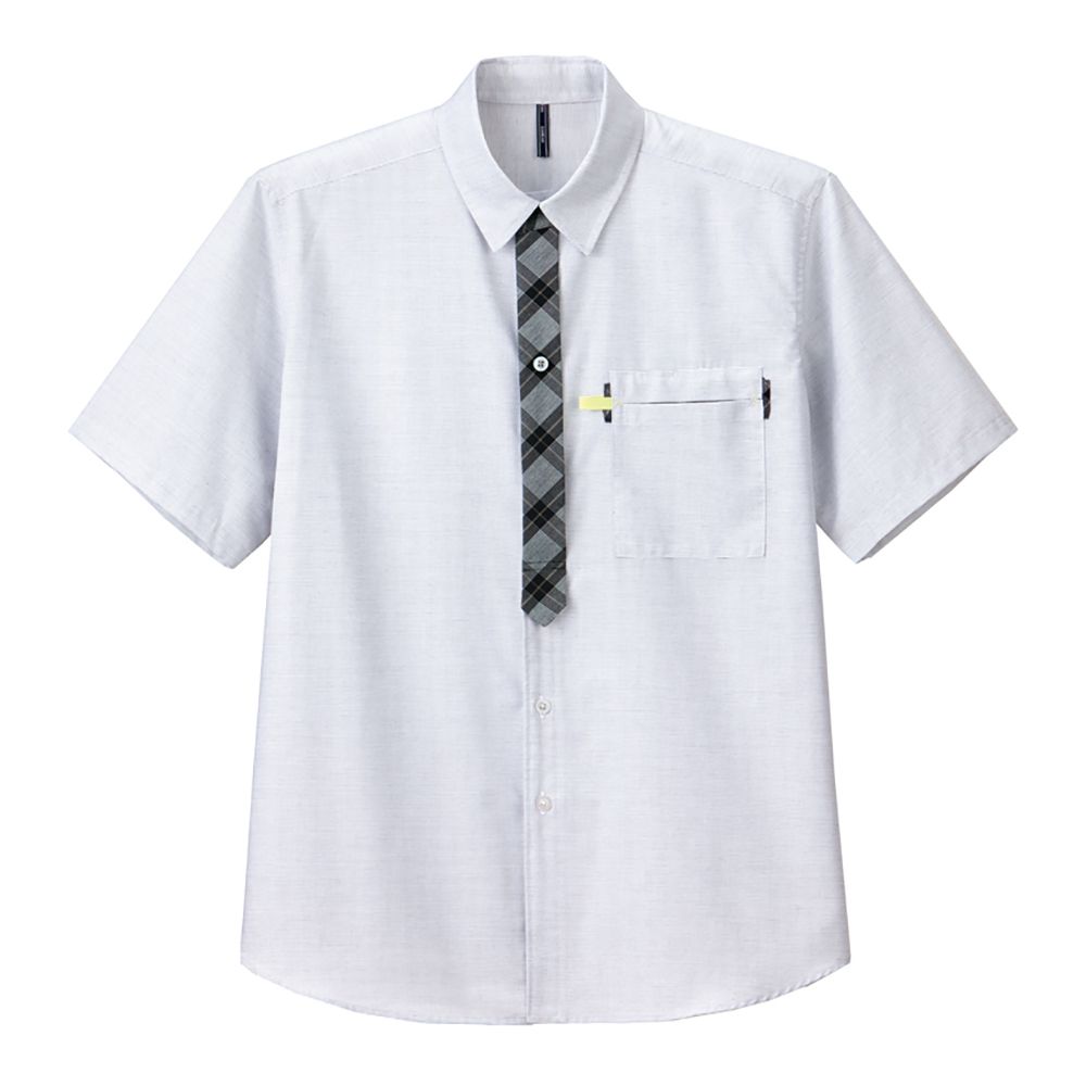 【CAREAN/キャリーン-CSY-124-11】男女兼用半袖トロンプルイユシャツ(ホワイト)【シェンシィボーダー】