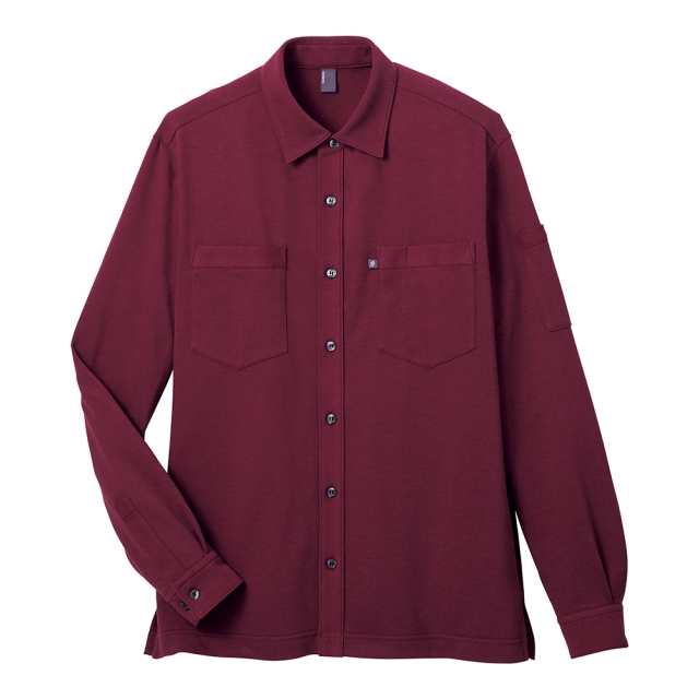 【CAREAN/キャリーン-CWY-173-1】男女兼用長袖シャツ(ワイン)【T/C鹿の子】